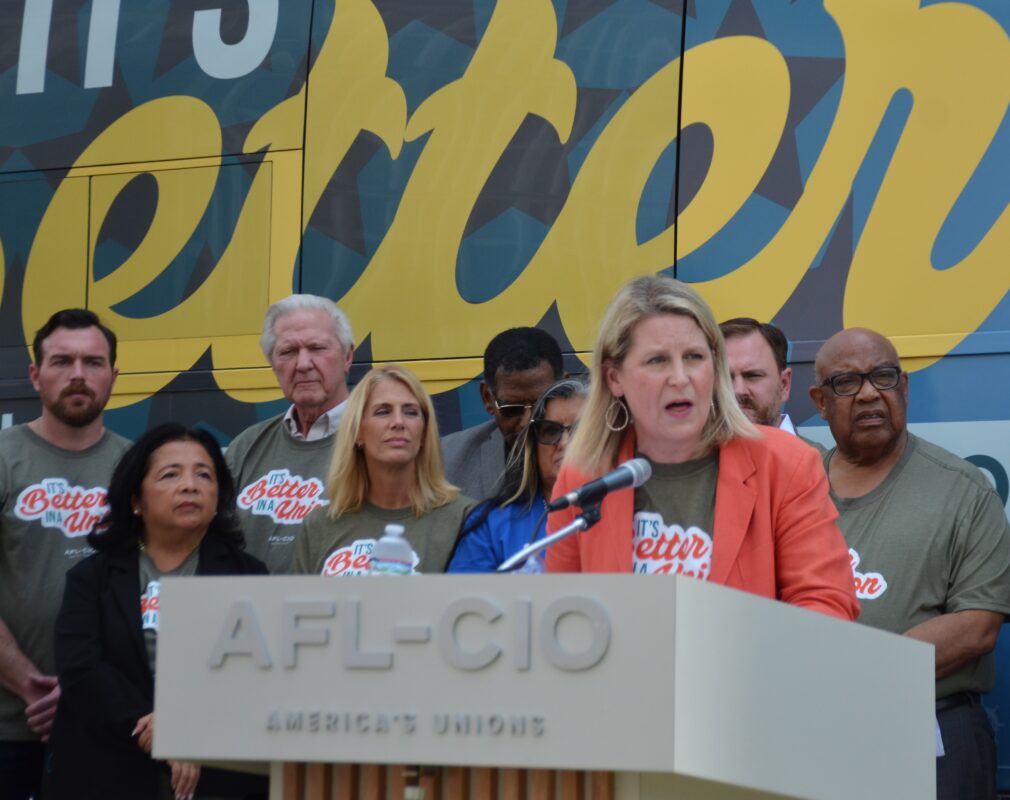 (Washington, D.C.) – Labor leaders and workers rallied today (July 9) at the AFL-CIO headquarters to launch the nationwide “It’s Better in a Union: Fighting for Freedom, Fairness and Security” bus tour. While big corporations profit off the backs of working people, and politicians continue to raise costs and cut essential lifesaving services, the labor movement will travel the country providing voice to and building power with workers in the lead up to Labor Day.