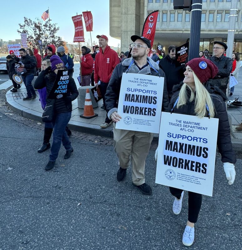 It’s been a busy December for the Communications Workers of America and their affiliates in the Washington, D.C. area. The union was at the forefront of two major labor actions over the last two weeks, first with a 24-hour walkout at the Washington Post and again at the Department of Health and Human Services (HHS) in support of HHS-contracted call center workers. Naturally, the Maritime Trades Department joined our union siblings on the picket line for both occasions.