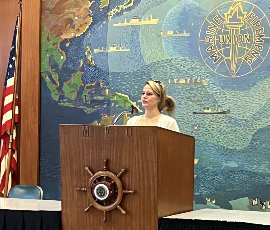 Executive Secretary-Treasurer Brittanie Potter served as guest speaker, sharing her background, highlighting the Department’s current legislative priorities—including strong support for the Jones Act, U.S. shipbuilding, and federal workers—and encouraging continued solidarity across the maritime trades.